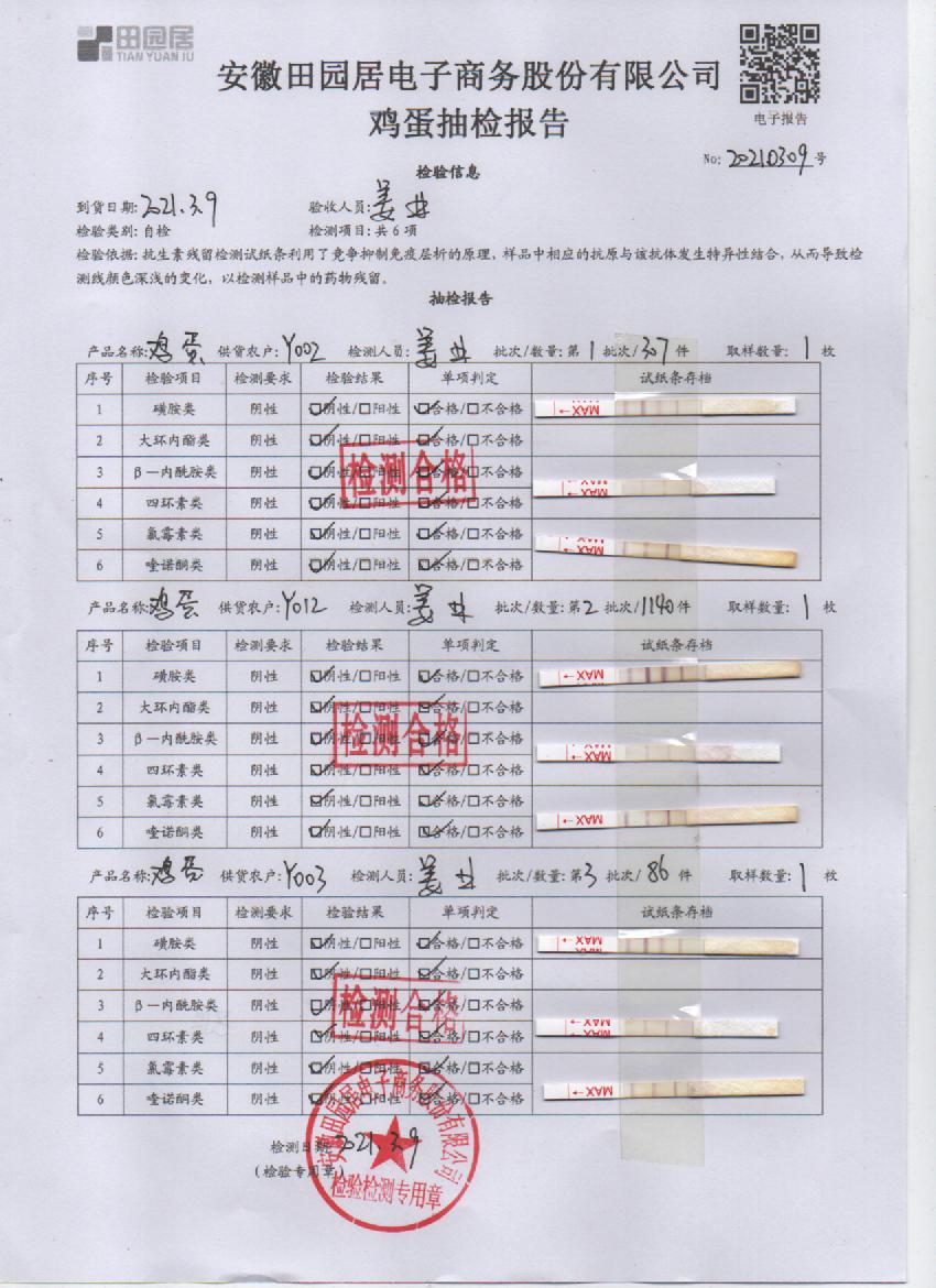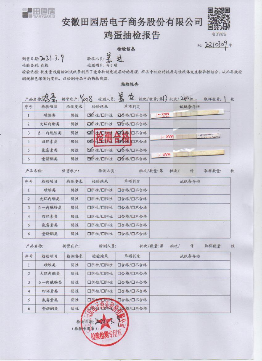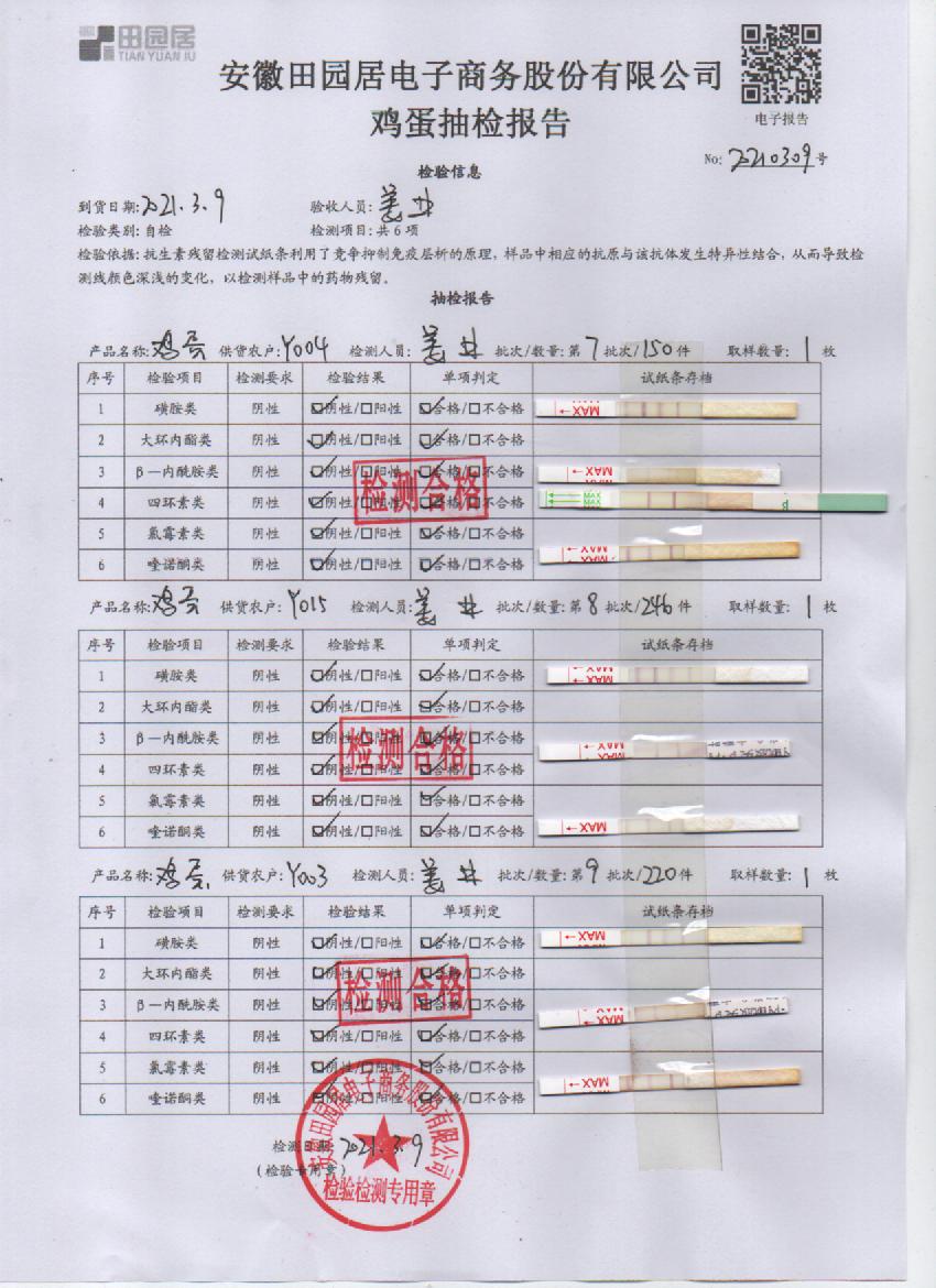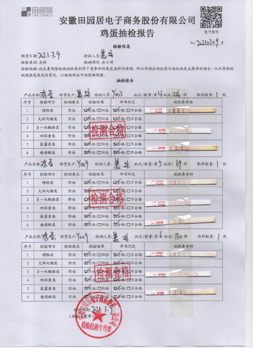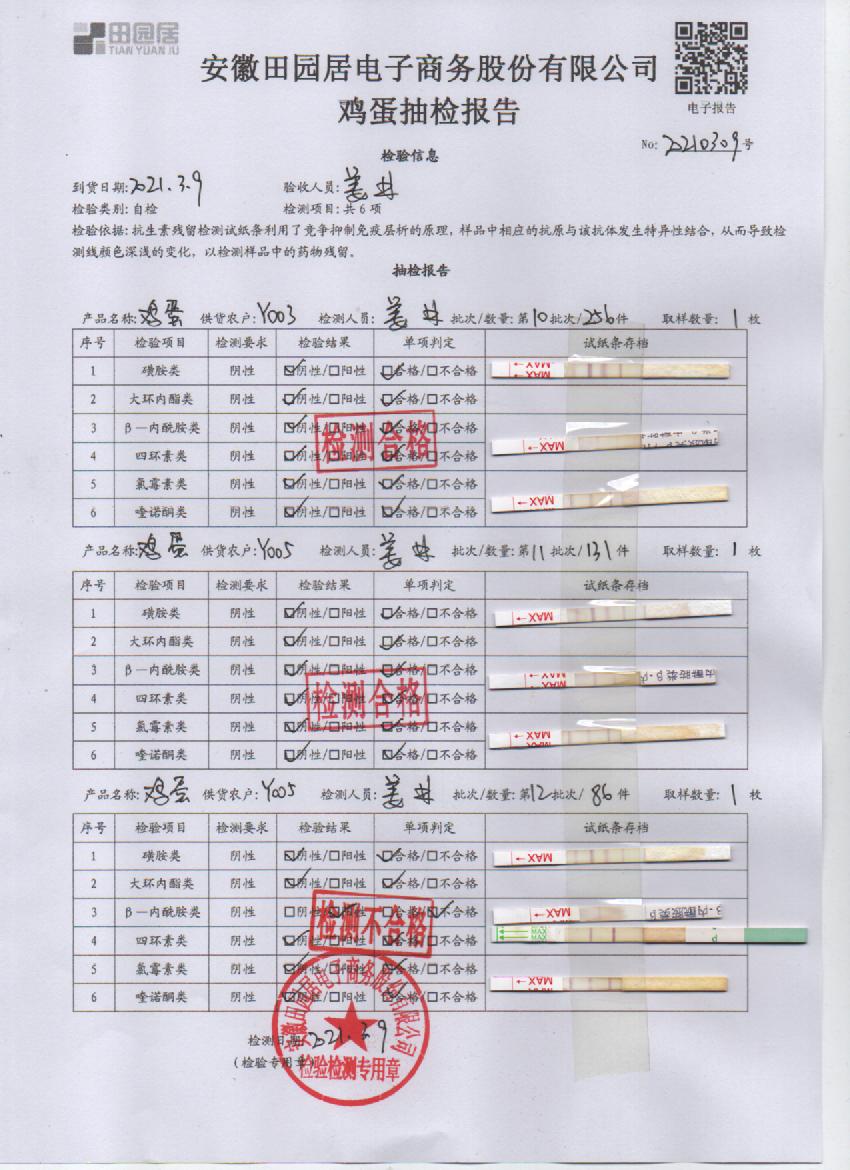 2021年3月9日鮮雞蛋檢測報告