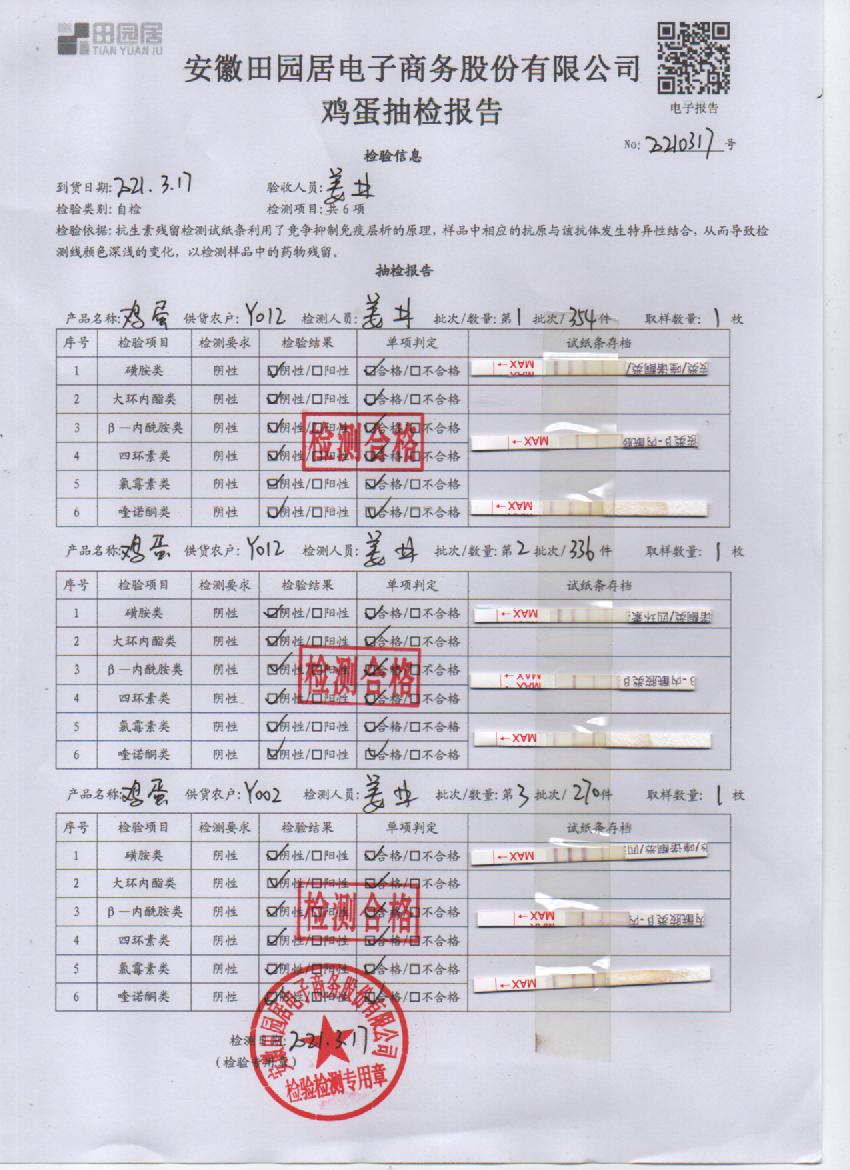 2021年3月17日鮮雞蛋檢測報告