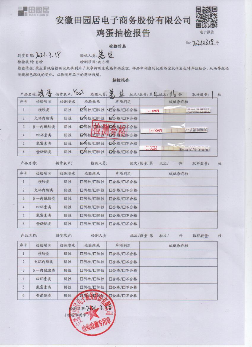 2021年3月18日鮮雞蛋檢測報告