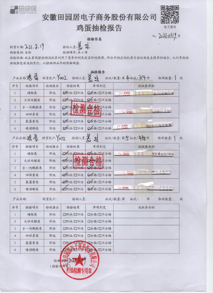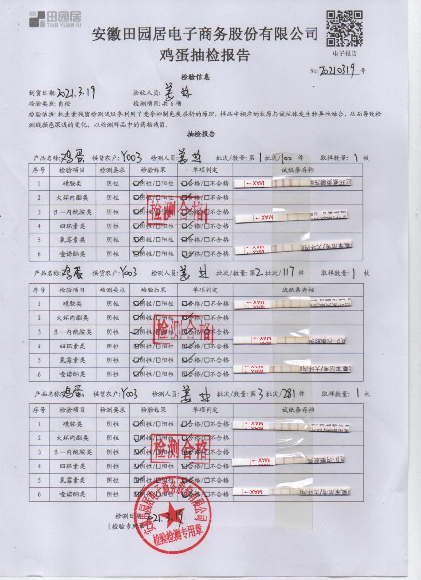 2021年3月19日鮮雞蛋檢測報告