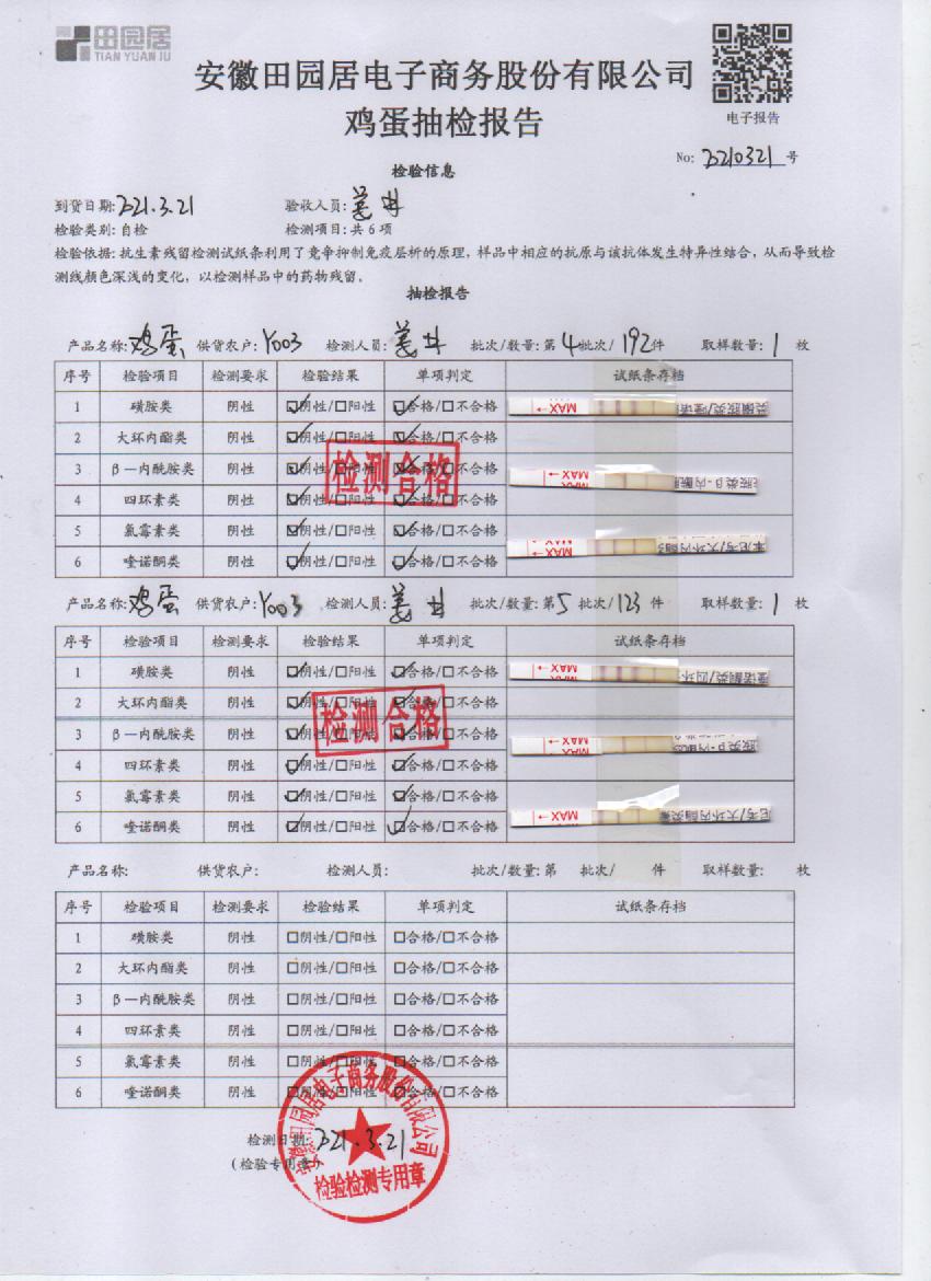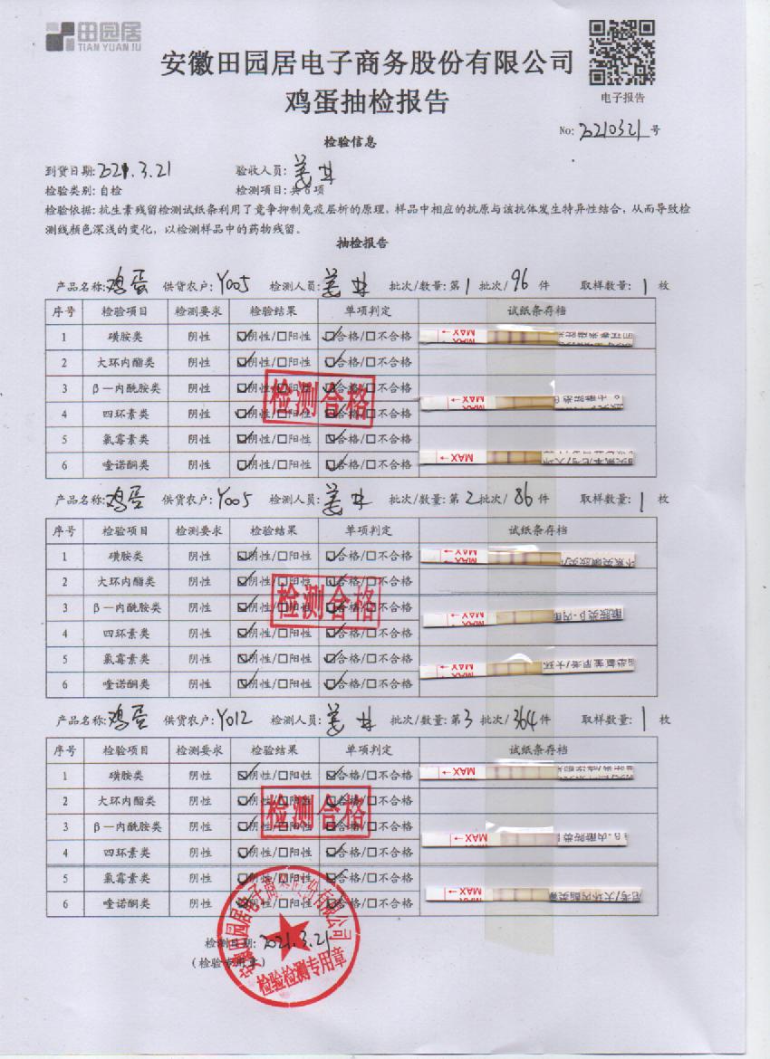 2021年3月21日鮮雞蛋檢測報告