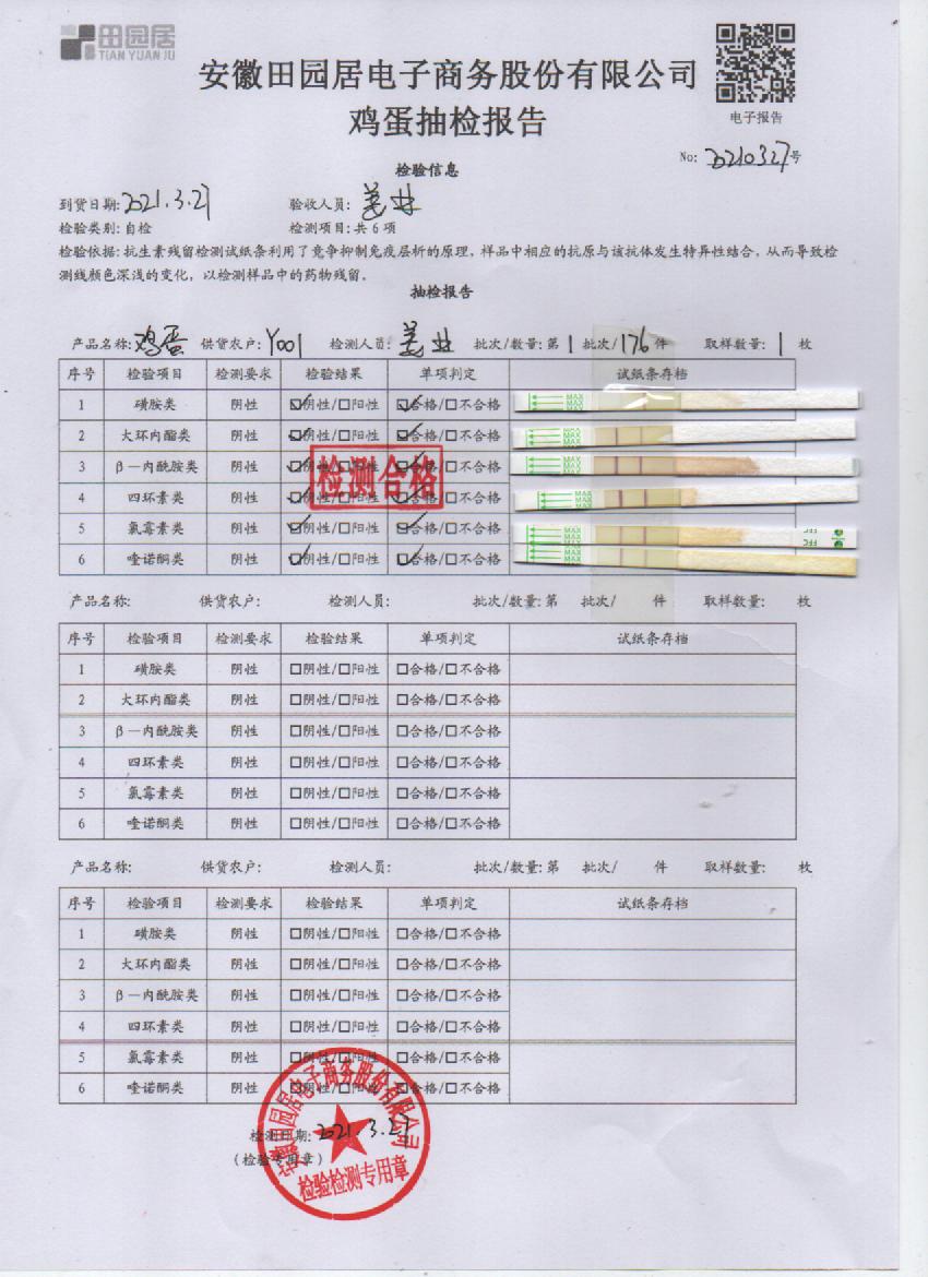 2021年3月28日鮮雞蛋檢測報告