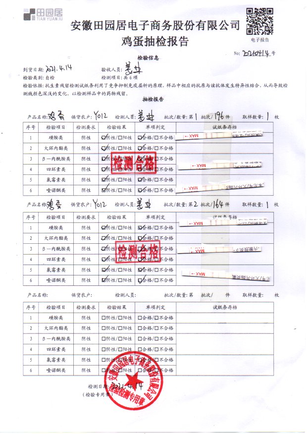 2021年4月14日鮮雞蛋檢測報告