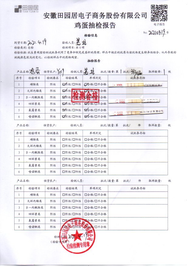 2021年4月19日鮮雞蛋檢測報告
