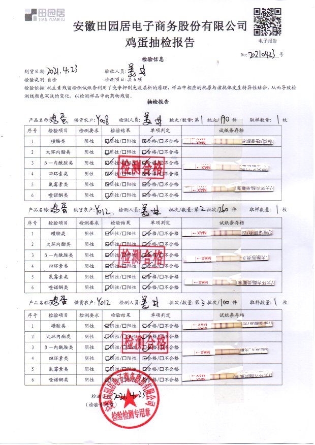 2021年4月23日鮮雞蛋檢測報告
