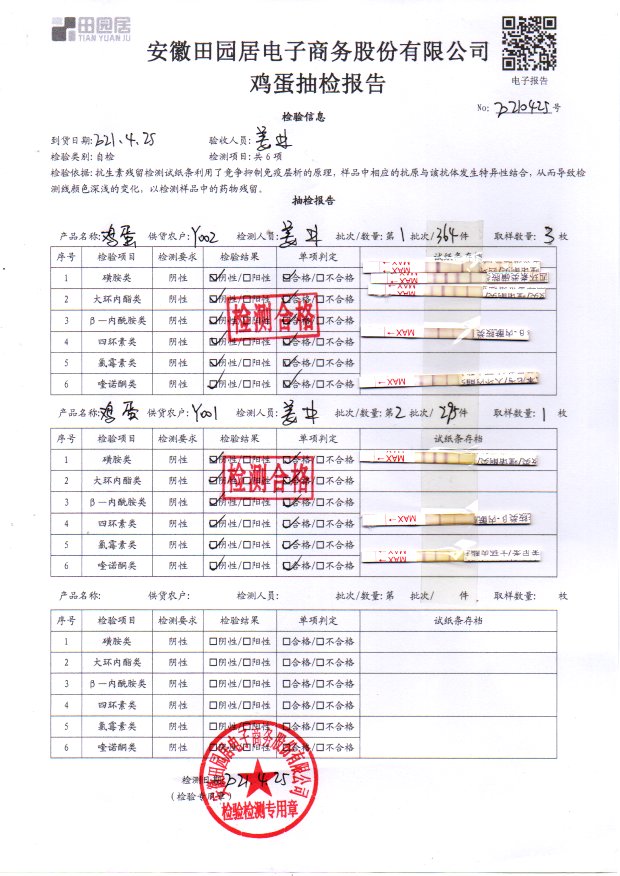 2021年4月25日鮮雞蛋檢測報告