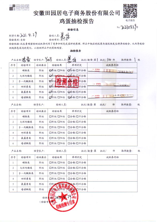 2021年4月29日鮮雞蛋檢測報告