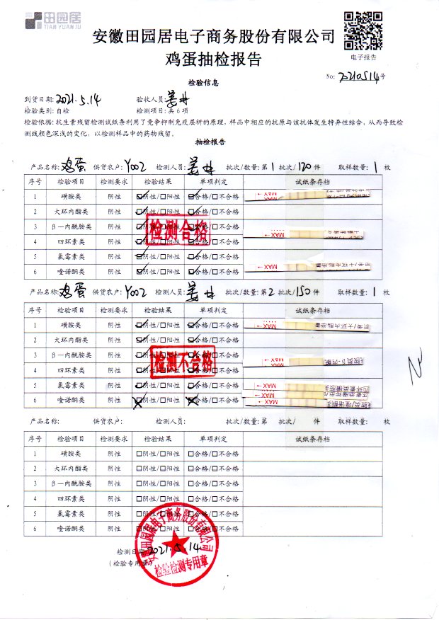 2021年5月14日鮮雞蛋檢測報告