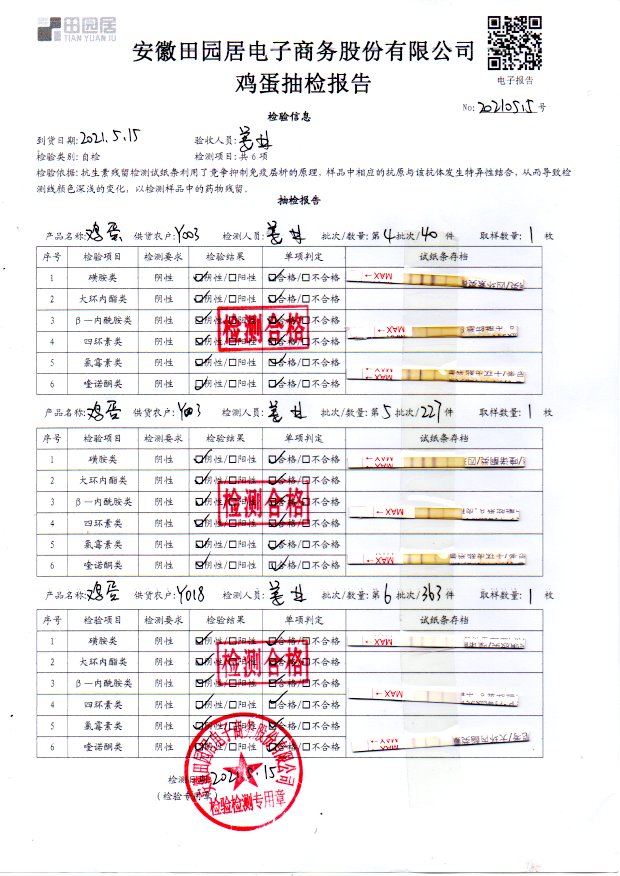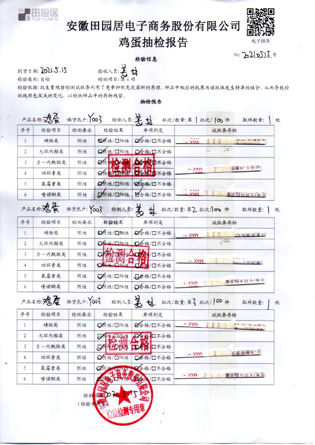 2021年5月16日鮮雞蛋檢測報告