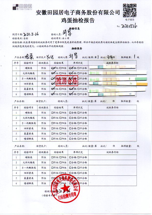2021年5月26日鮮雞蛋檢測報告