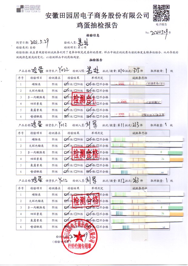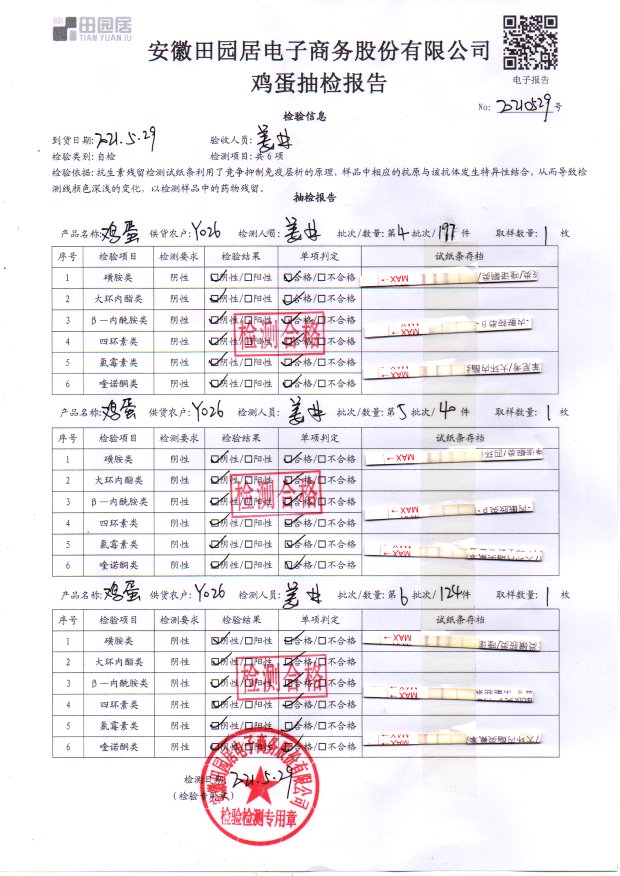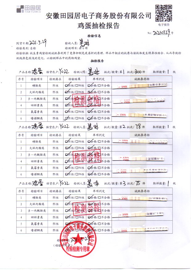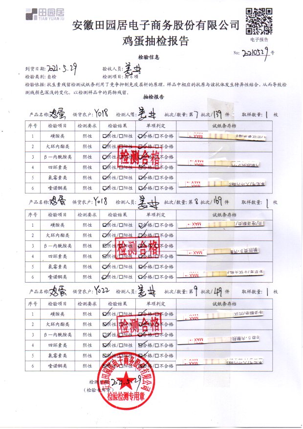 2021年5月29日鮮雞蛋檢測報告