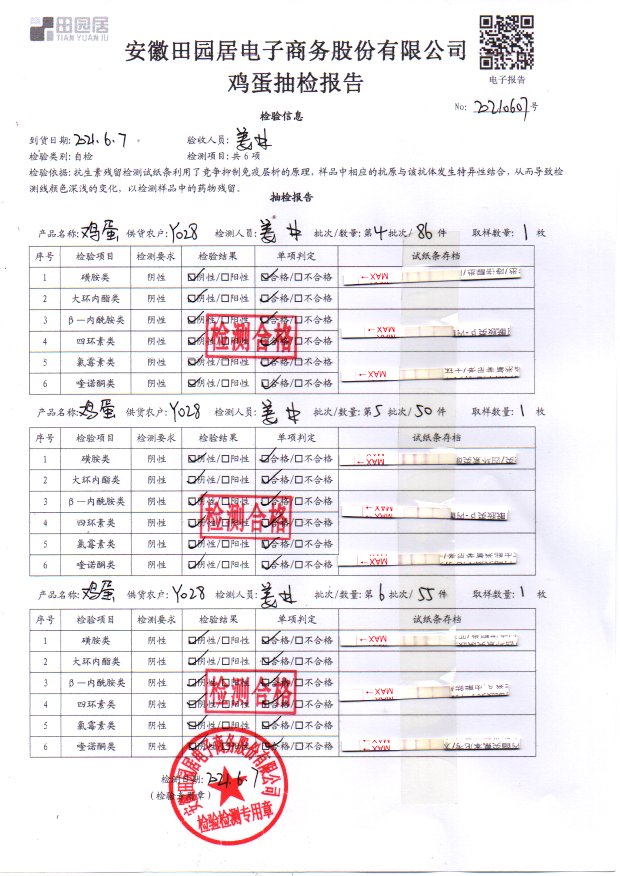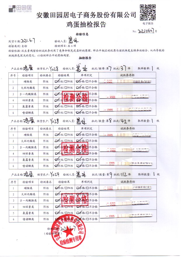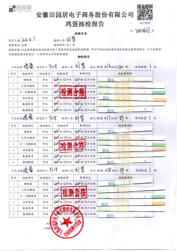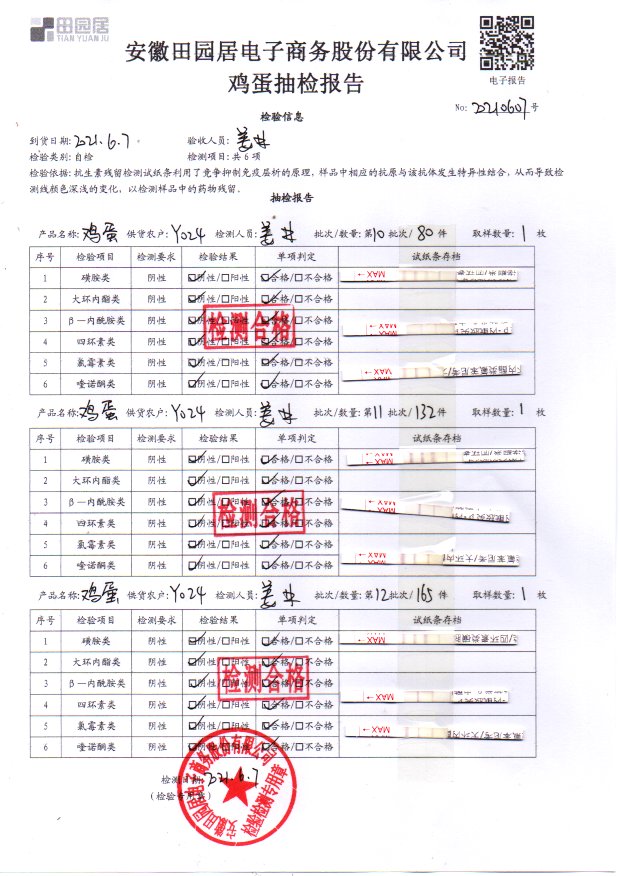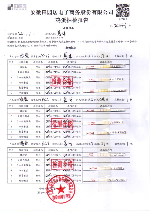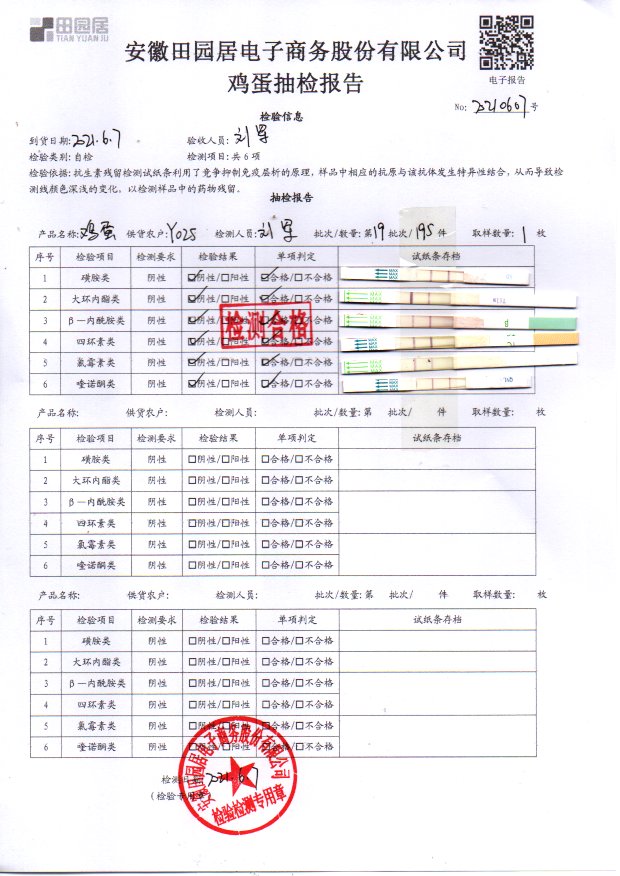 2021年6月7日鮮雞蛋檢測報告