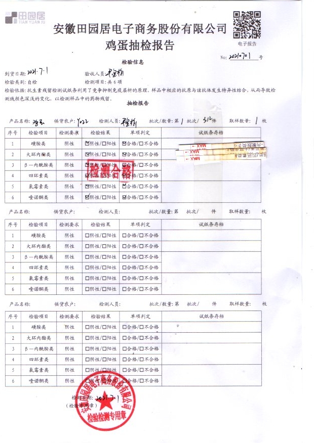 2021年6月30號鮮雞蛋檢測報告