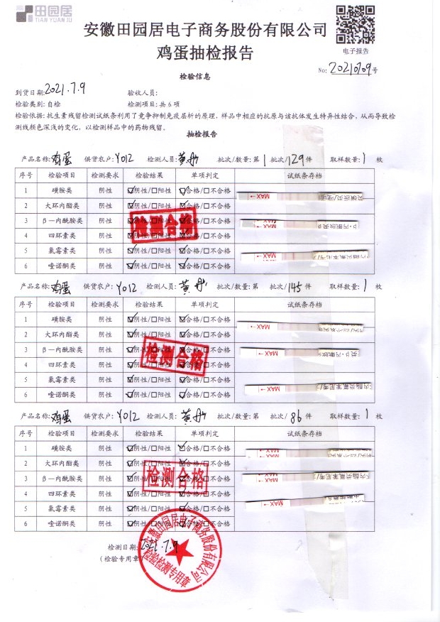 2021年7月7號鮮雞蛋檢測報告