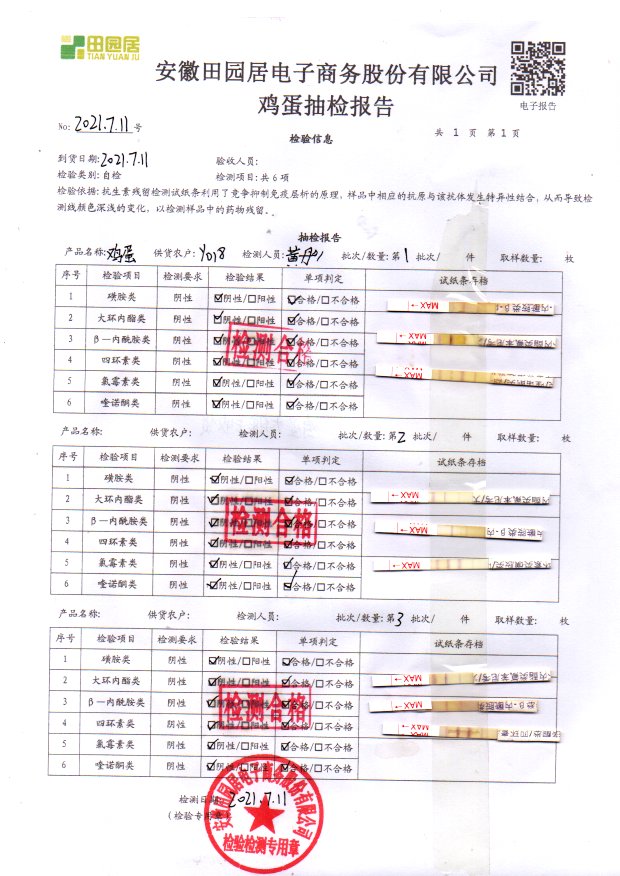 2021年7月11號鮮雞蛋檢測報告