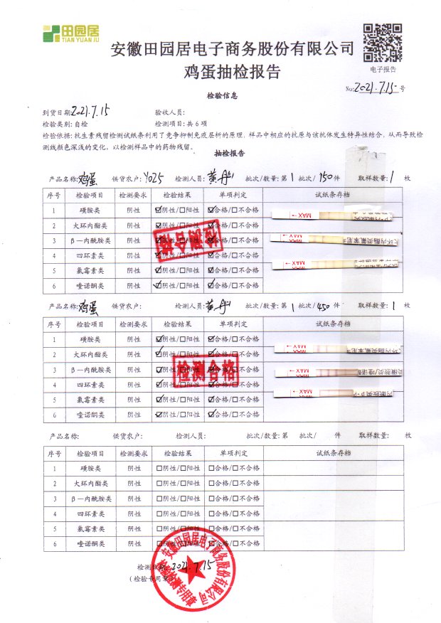 2021年7月12號鮮雞蛋檢測報告