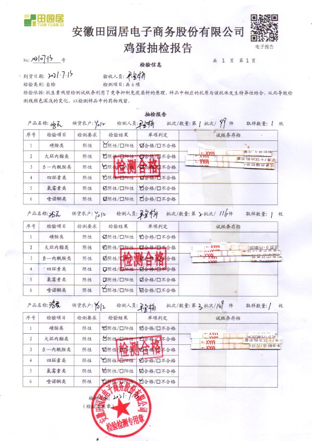 2021年7月13號鮮雞蛋檢測報告