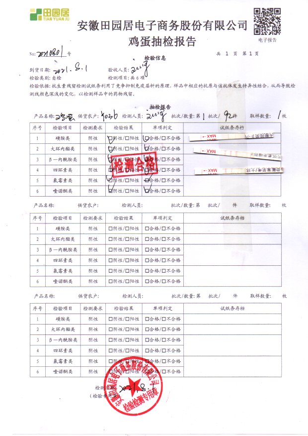 2021年8月01號鮮雞蛋檢測報告