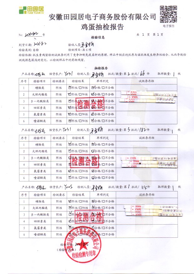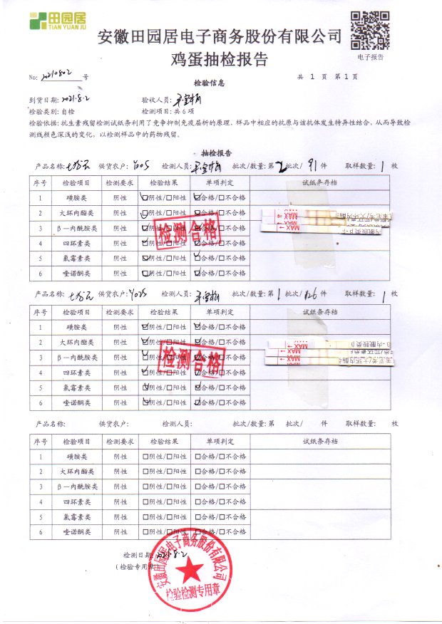 2021年8月03號鮮雞蛋檢測報告