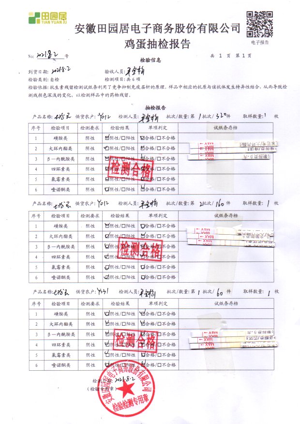 2021年8月02號鮮雞蛋檢測報告