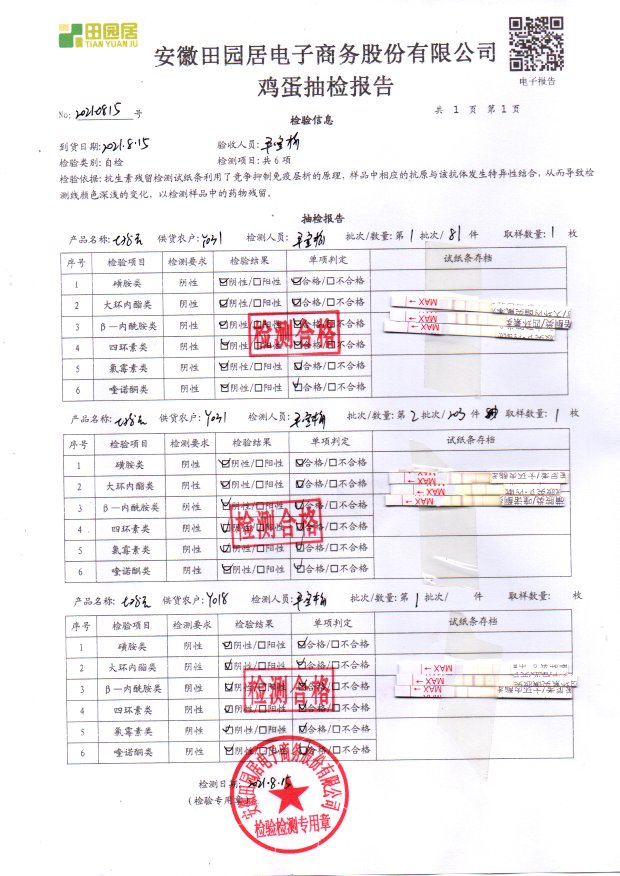 2021年8月15號鮮雞蛋檢測報告
