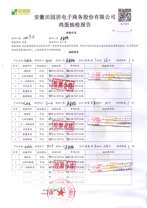 2021年9月15號鮮雞蛋檢測報告
