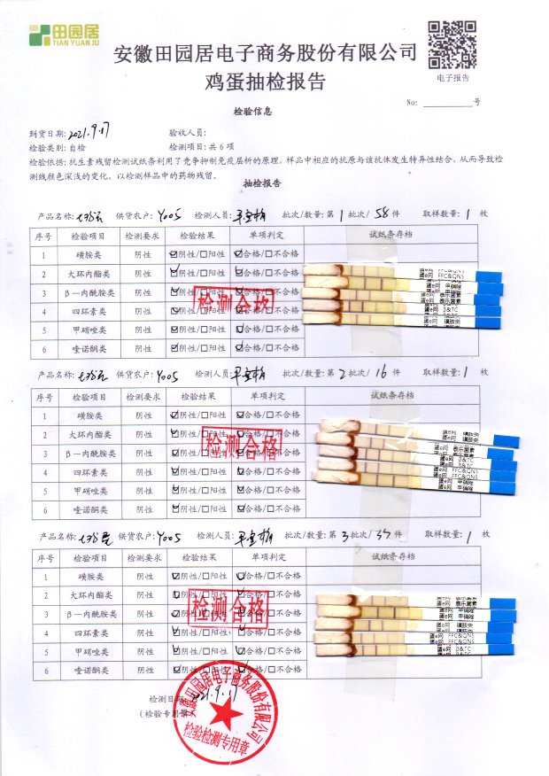 2021年9月16號鮮雞蛋檢測報告