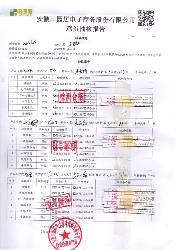 2021年9月18號鮮雞蛋檢測報告