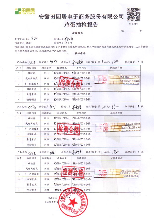 2021年9月24號鮮雞蛋檢測報告
