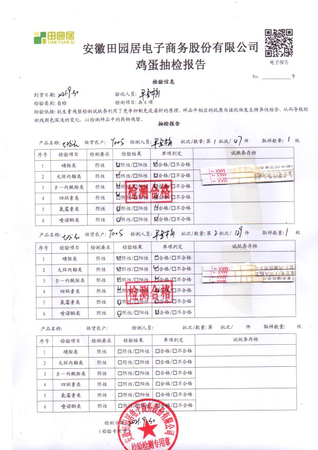 2021年9月29號鮮雞蛋檢測報告