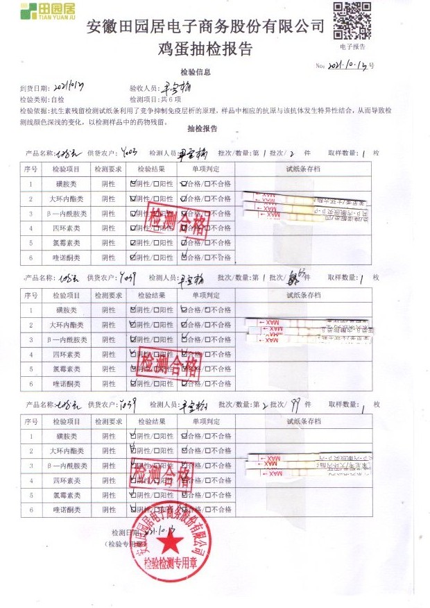 2021年10月12號鮮雞蛋檢測報告