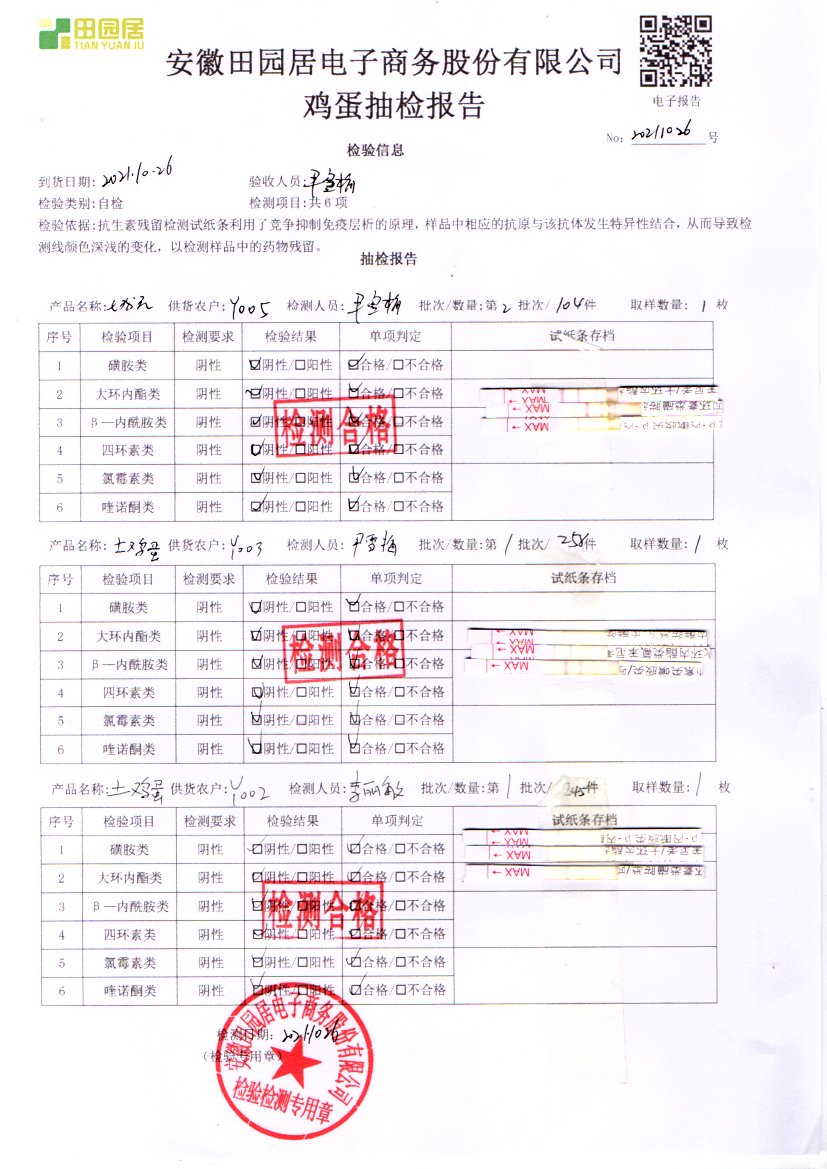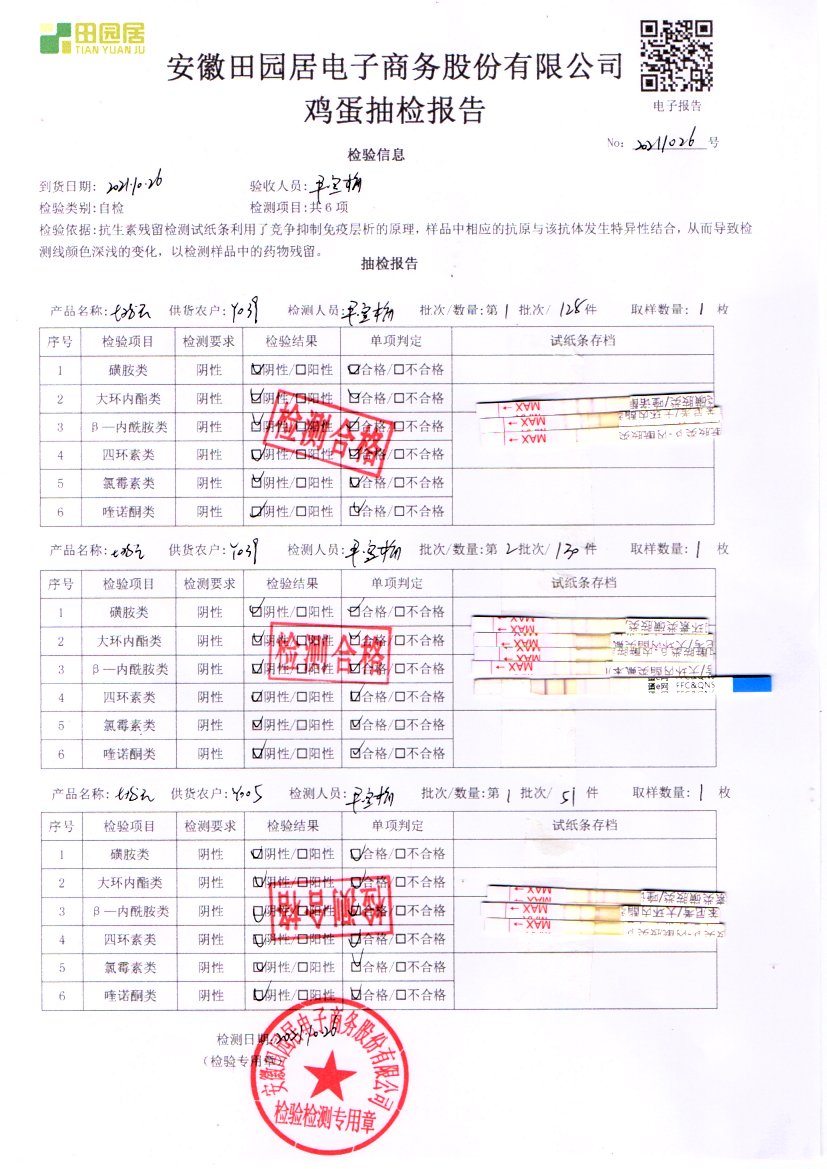 2021年10月26號鮮雞蛋檢測報告