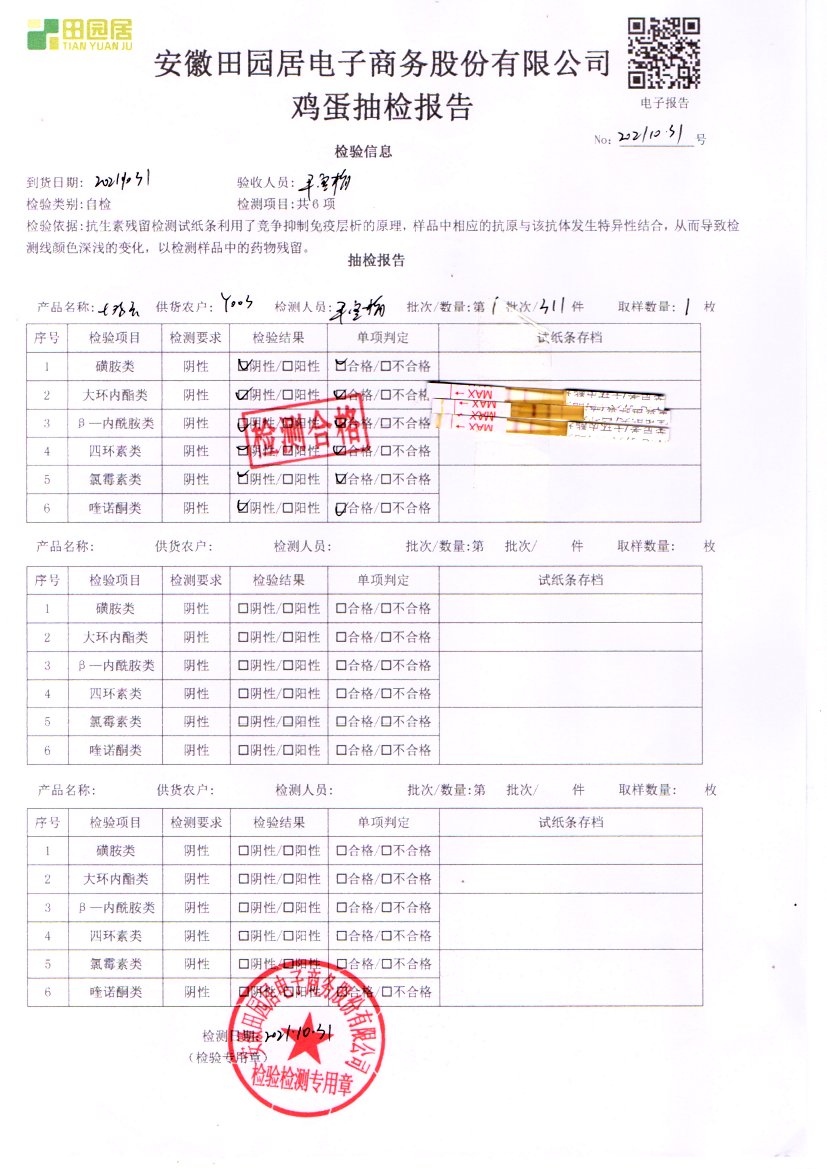2021年10月31號鮮雞蛋檢測報告