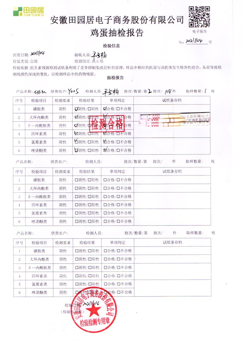 2021年11月04號鮮雞蛋檢測報告