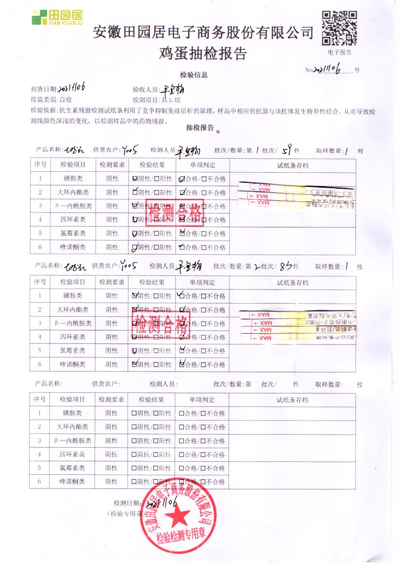 2021年11月06號鮮雞蛋檢測報告