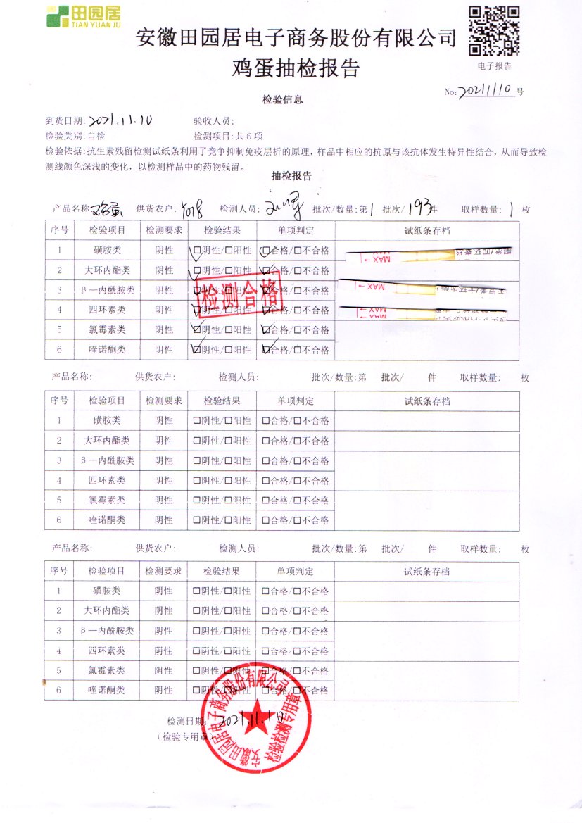 2021年11月11號鮮雞蛋檢測報告
