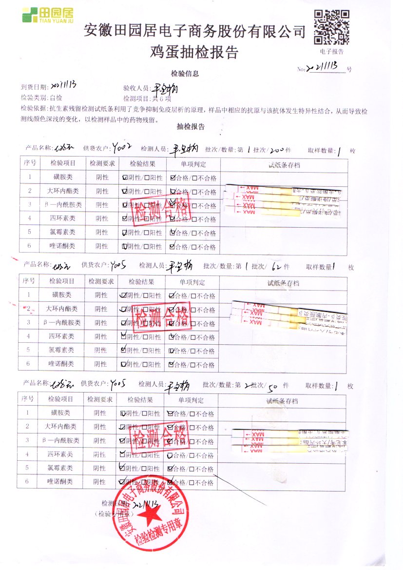 2021年11月12號鮮雞蛋檢測報告