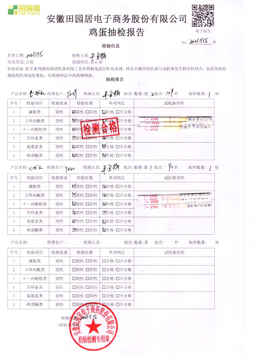 2021年11月15號鮮雞蛋檢測報告
