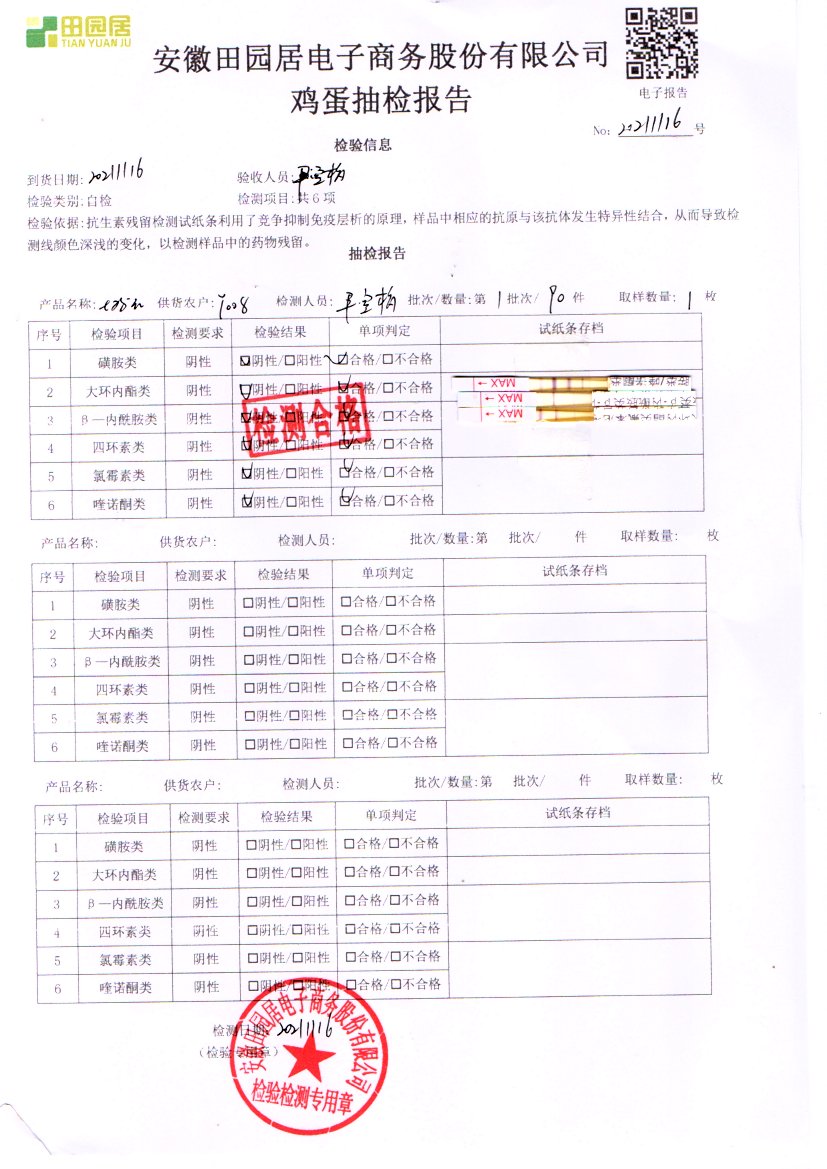 2021年11月16號鮮雞蛋檢測報告