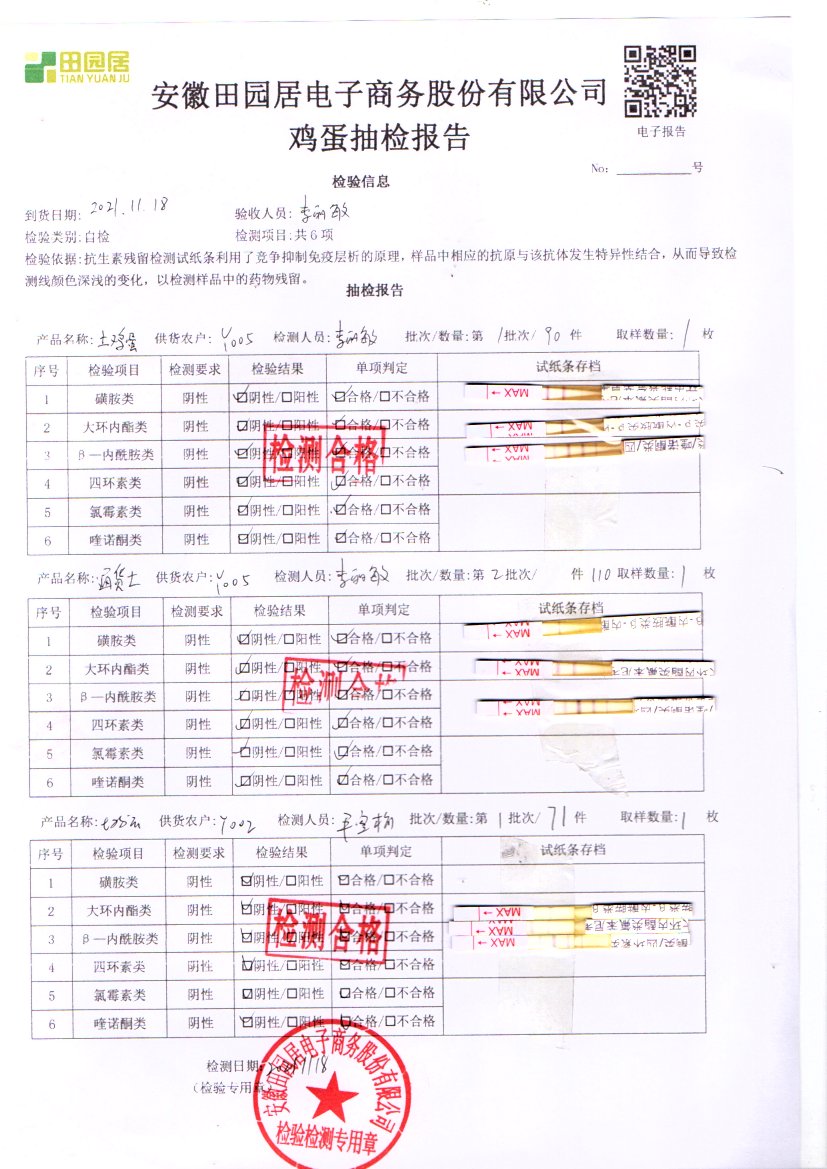 2021年11月18號鮮雞蛋檢測報告