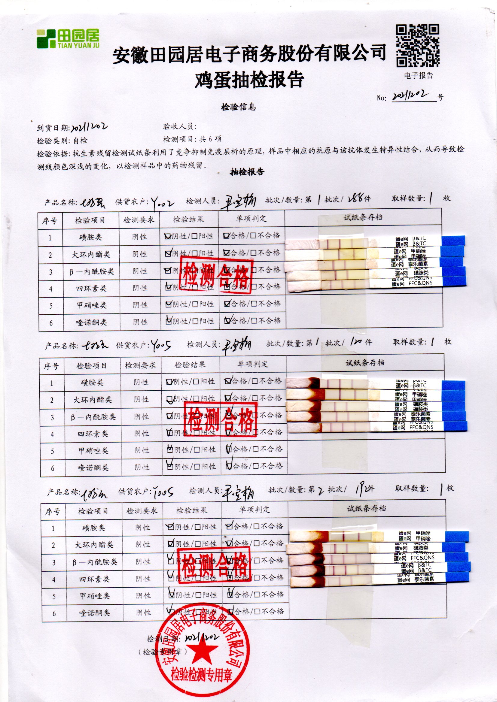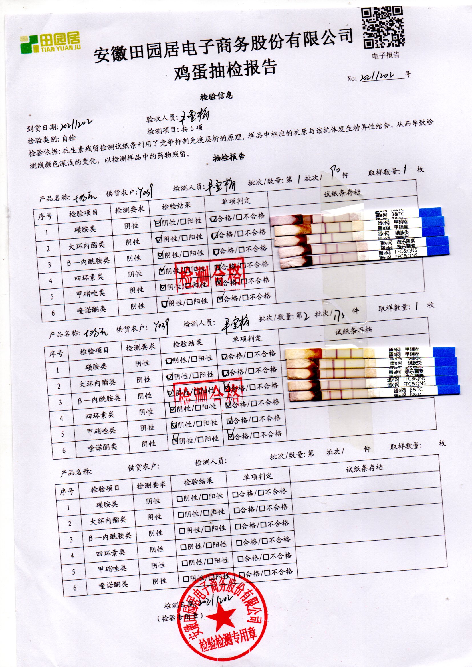 2021年12月01號鮮雞蛋檢測報告
