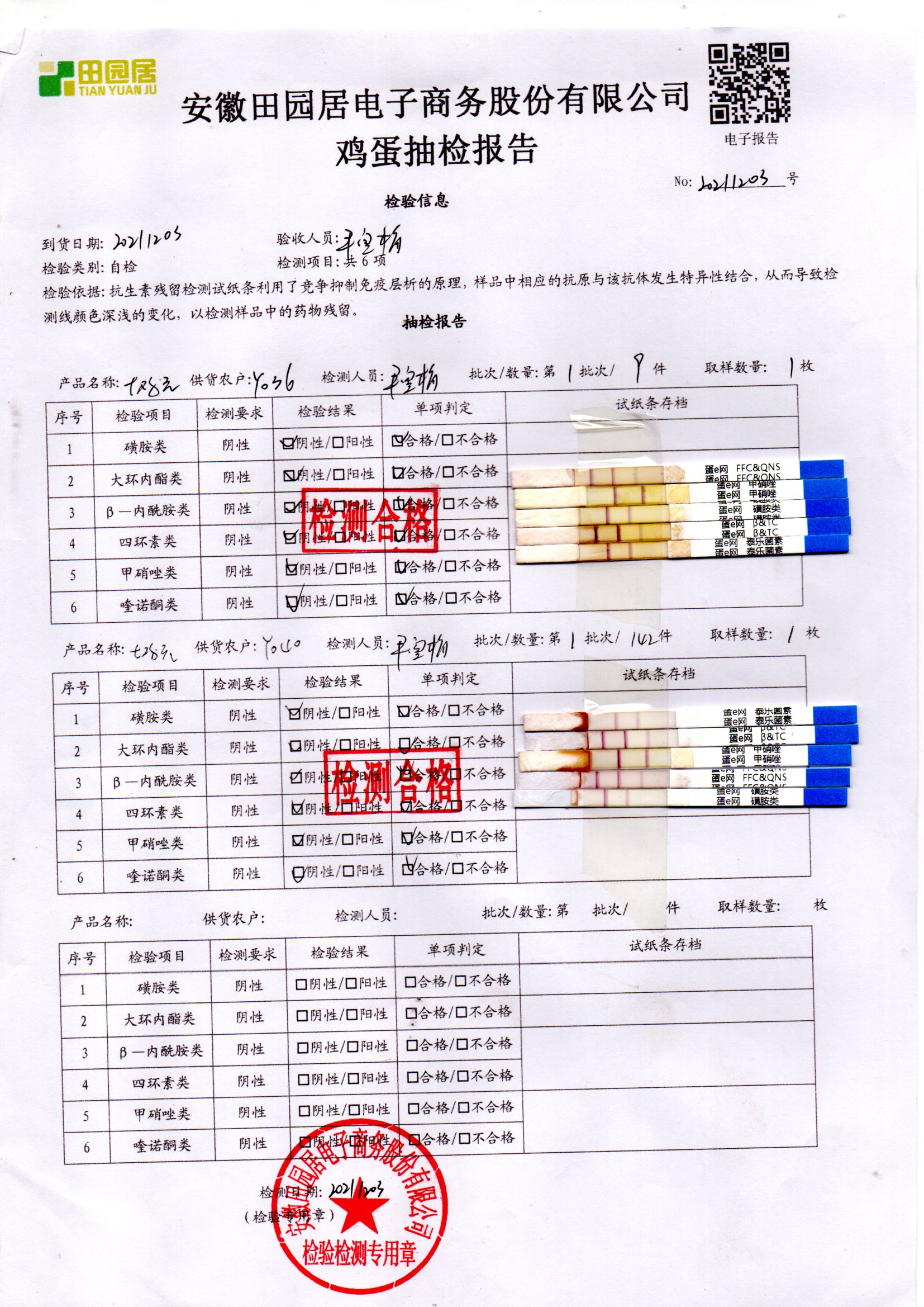 2021年12月03號鮮雞蛋檢測報告