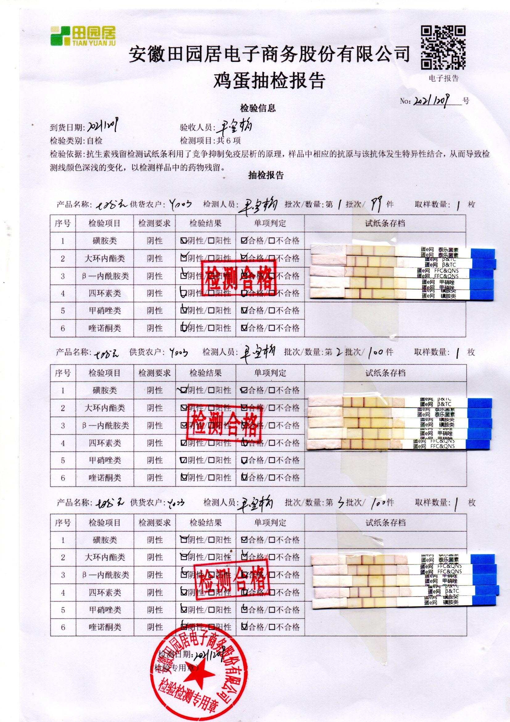 2021年12月07號鮮雞蛋檢測報告