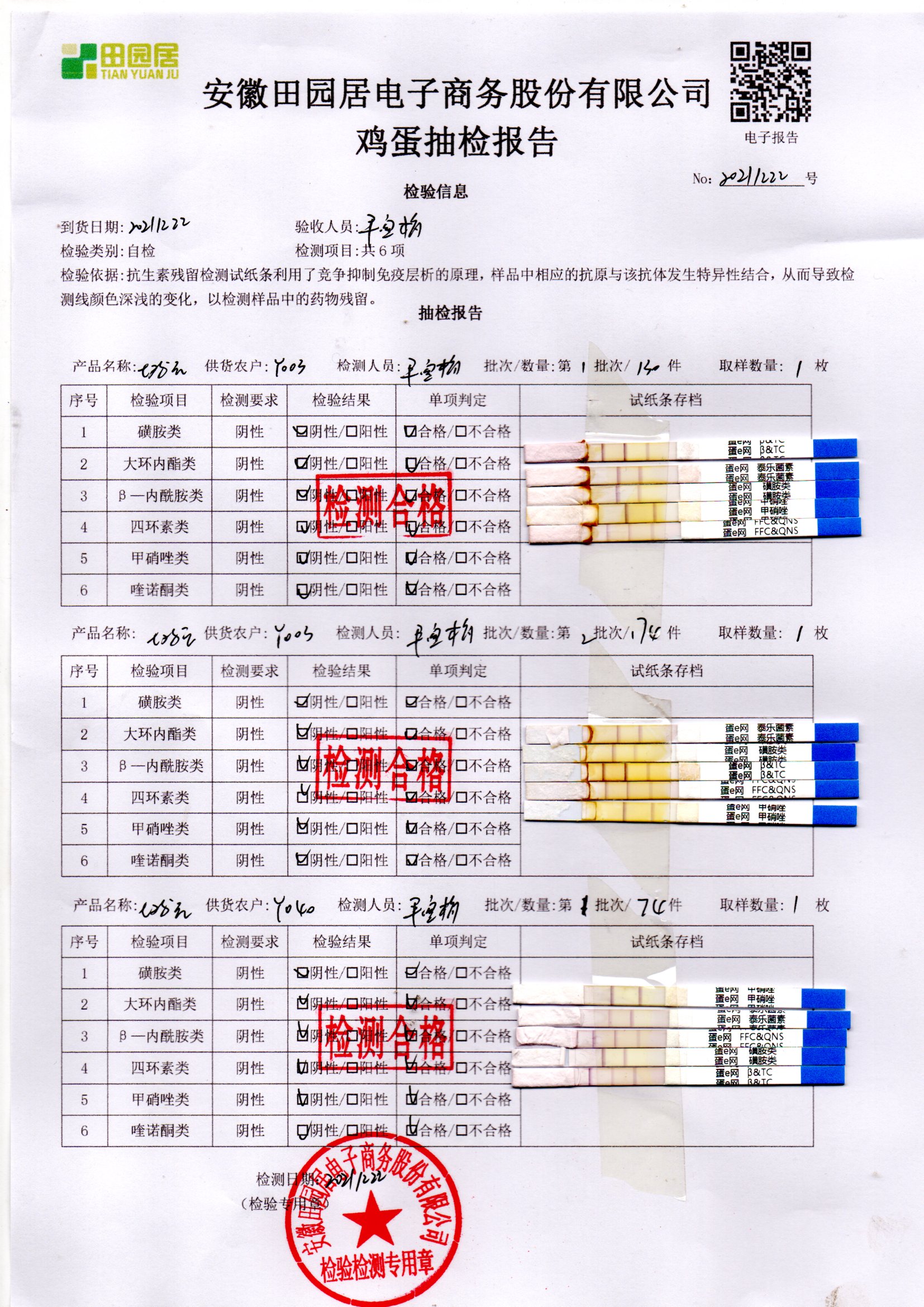 2021年12月22號鮮雞蛋檢測報告