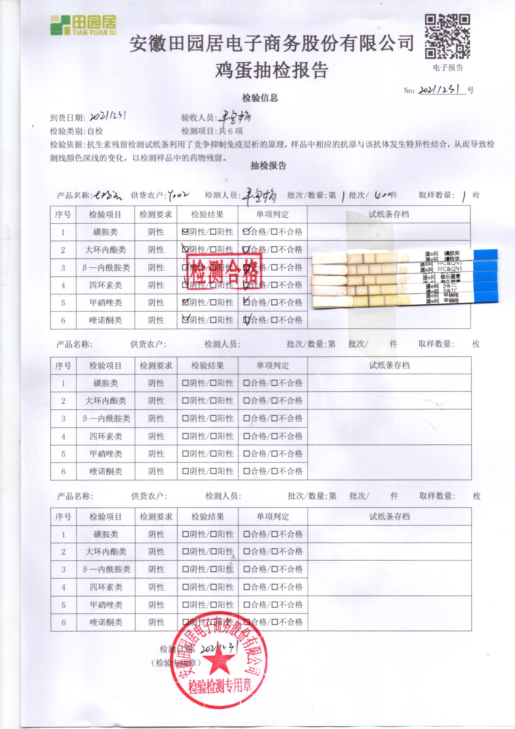 2021年12月31號鮮雞蛋檢測報告