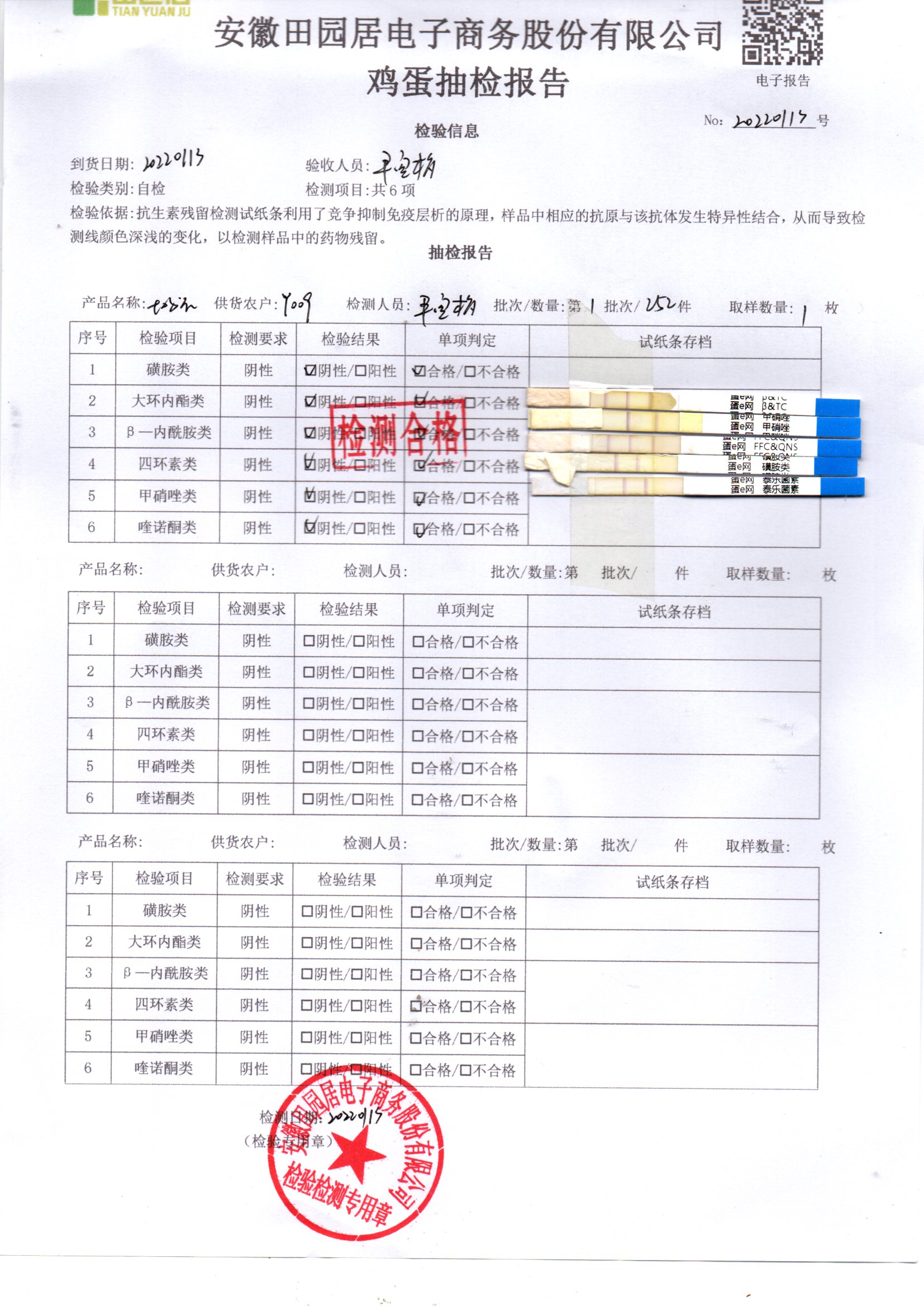 2022年01月13號鮮雞蛋檢測報告